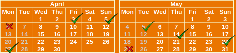 | Eerste Paasdag | Zondag 4 mei | 12:00-23:00 |